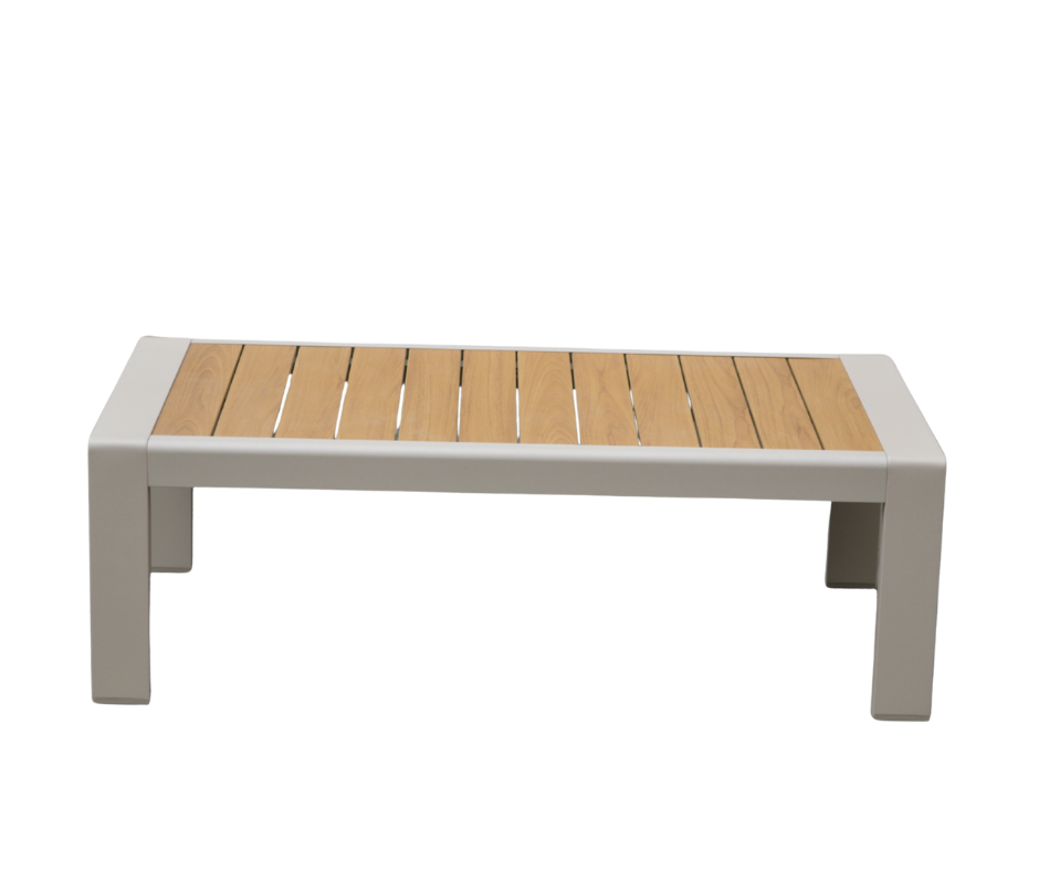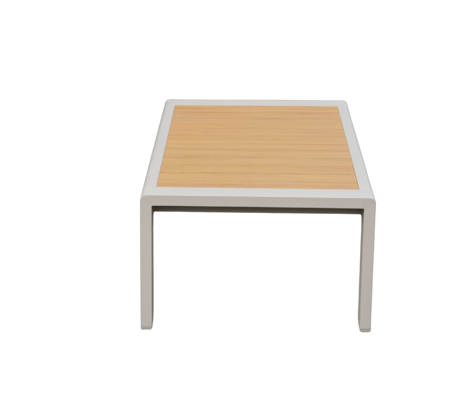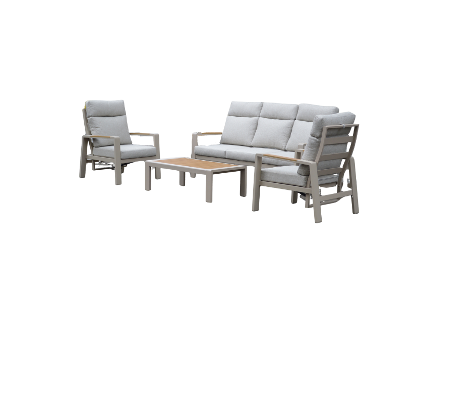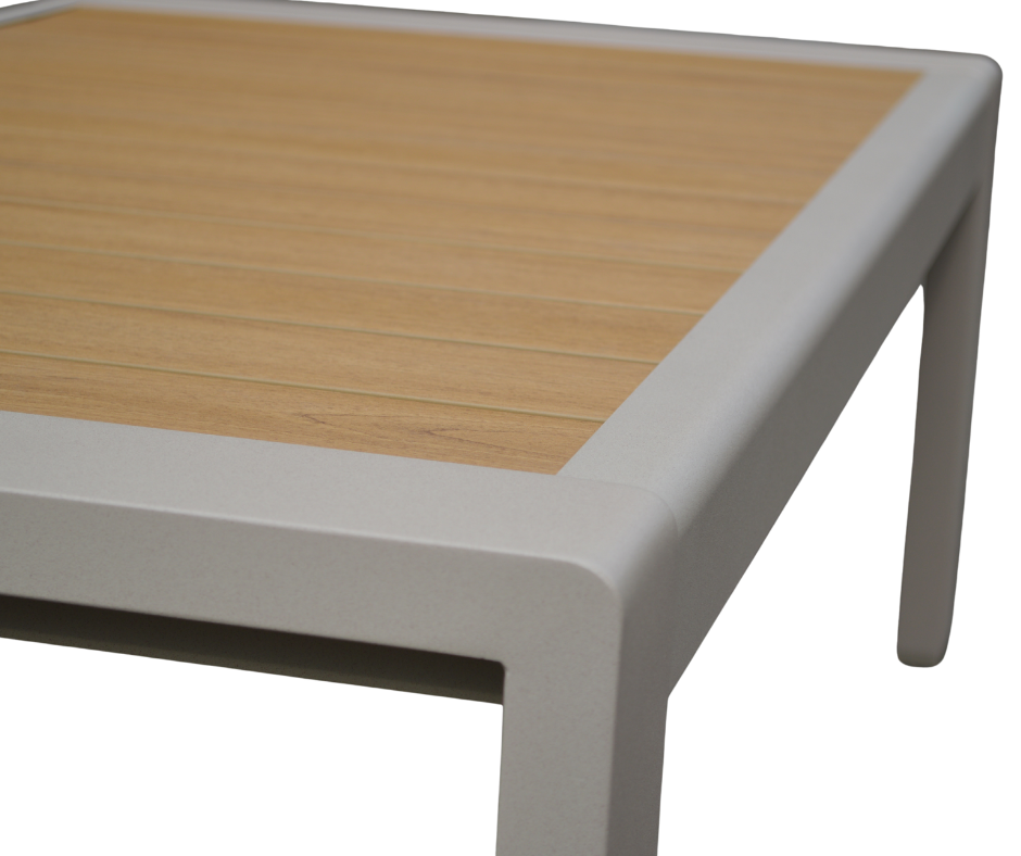 - Armleuningen en salontafel met onderhoudsvriendelijke Polywood afwerking