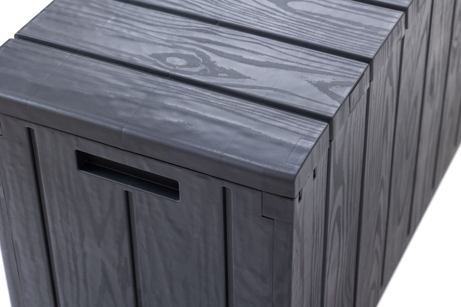 De Toomax Bravo opbergbox is de perfecte oplossing voor het opbergen van kussens, tuinaccessoires en andere spullen in je tuin of op je terras. Deze stijlvolle en multifunctionele box biedt een combinatie van gebruiksgemak, duurzaamheid en een aantrekkelijk ontwerp. Door het grote volume van 270 liter is er genoeg plek voor het opbergen van bijvoorbeeld tuinkussens of verschillende soorten tuingereedschap. Ook is de box geschikt om op te zitten. Er is een mogelijkheid voor twee personen om op te zitten met een maximumgewicht van 220kg. De box beschikt over een hangslotvoorziening zodat je de box volledig kan afsluiten. (hangslot niet meegeleverd).