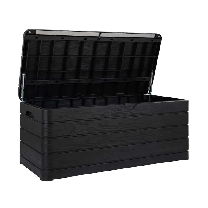 Deze ruime box biedt een droge en goed geventileerde opslagplek voor je spullen. Het stevige kunststof model heeft een strak design, waardoor het niet alleen praktisch is, maar ook mooi in de tuin staat. De kussenbox is uitgerust met handgrepen, zodat je de box gemakkelijk kunt verplaatsen. Dankzij de gasveren blijft het deksel openstaan en is de box eenvoudig te openen. De opslagcapaciteit bedraagt maar liefst 640 liter. Deze Toomax box is gemaakt van duurzaam kunststof, eenvoudig te monteren en bestand tegen regenwater (maar niet volledig waterdicht).