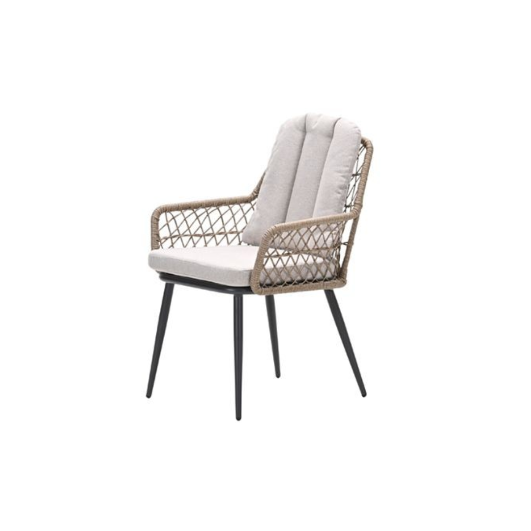 De Allasio dining stoelen zijn gemaakt van een lichtgewicht aluminium frame. Op het frame is een beschermende poedercoating aangebracht. De arm- en rugleuningen zijn afgewerkt met een handgevlochten, kunststof vlechtdraad. Dit vlechtdraad heeft door zijn kleur en afwerking een zeer natuurlijke uitstraling en lijkt hierdoor op echt wicker, echter behoeft dit kunststof draad vrijwel geen onderhoud.